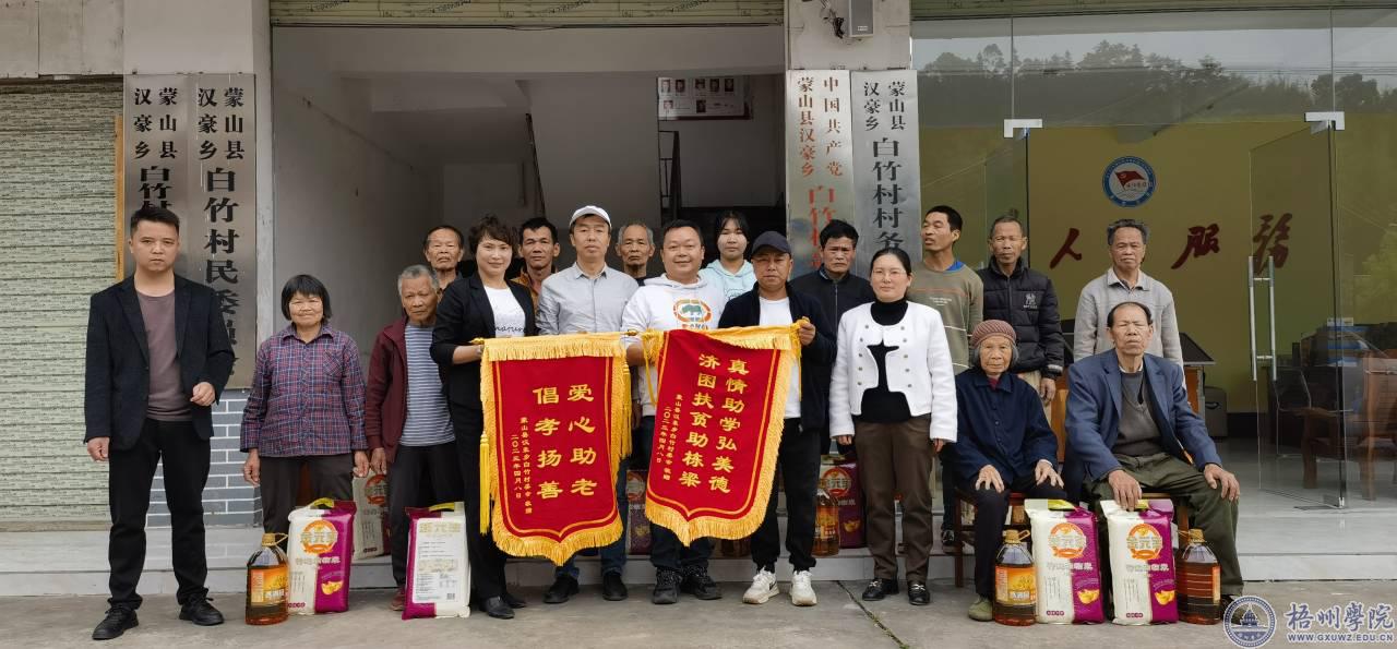 为进一步巩固脱贫攻坚衔接乡村振兴工作成效,近日,学校驻村第一书记区敏涓多方开拓挖掘社会公益资源,积极联系梧州盛骏金属有限公司等社会力量爱心企业,到蒙山县汉豪乡白竹村开展面向农村优秀学子或家庭困难学生、孤寡老人的助学扶老活动。