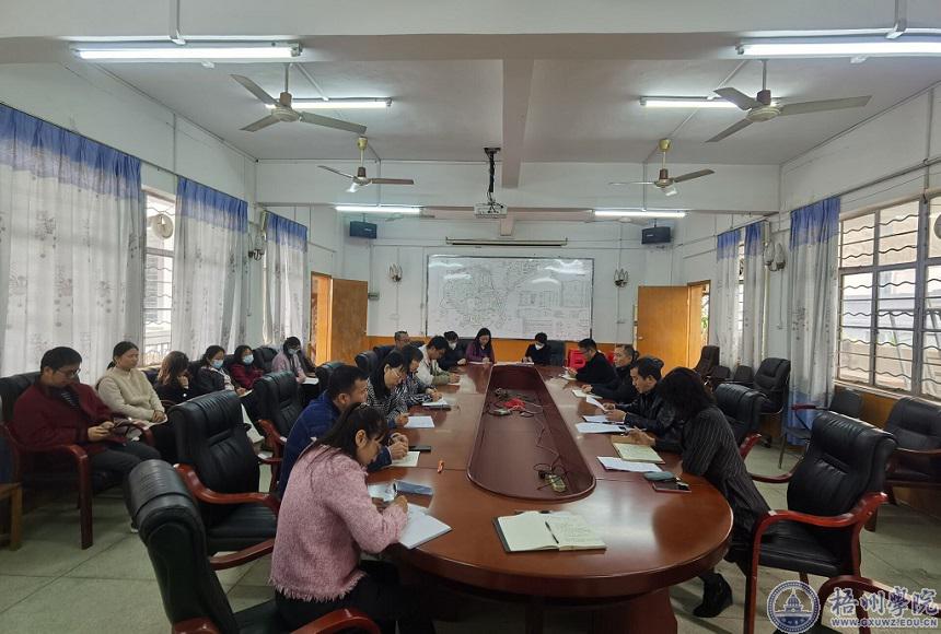 会上,教务处副处长彭金虎对新生开学的学籍管理、第二批专业评估的整改、毕业论文质量管理、校内实践教学管理、制定出台导师管理办法和校内学分认定管理办法、落实“金课”“金师”“金专”等专业课程及师资队伍的建设等十项重点工作提出明确的任务要求。江成英副处长对春季开学教材发放、春季招生宣传工作、语委普通话测试室投入使用情况进行了详细的工作布置。教务处副处长张俊杰针对考务科、评建办、教室发展中心和高教研究室的科室日常工作提出了统筹规划意见,要求以大局观按时间截点标明各科室工作重点,做到每月固定事项紧跟计划执行。