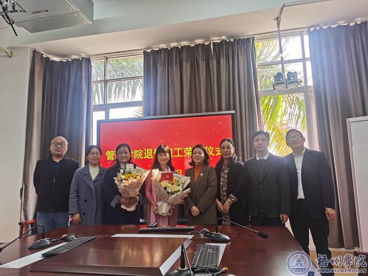 2月22日下午,管理学院在国际商务谈判实验室为许慧和冯琼兰两位老师举办了一场简单而温馨的欢送仪式。学院班子成员和部分教师代表出席仪式。会议由学院党委副书记、工会主席陈兴主持。