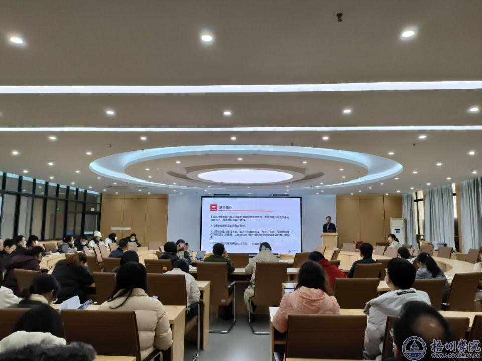 在培训会上,学校党委常委、组织部部长、统战部部长、党校副校长黄健武,商学院党委副书记叶子琛以学校第四次党代会的选举筹备工作为例,带来题为《提高站位凝聚共识迎接第四次党代会胜利召开——如何做好党代会代表选举工作》的专题培训。在培训中,叶子琛讲解学校第四次党代会党代表候选人应具备的条件和选举党代表的时间、流程等内容,黄健武为全体学员作现场答疑。黄健武强调,基层党务干部要提高认识,加强业务学习,规范指导各党支部开展党代表选举各项工作。