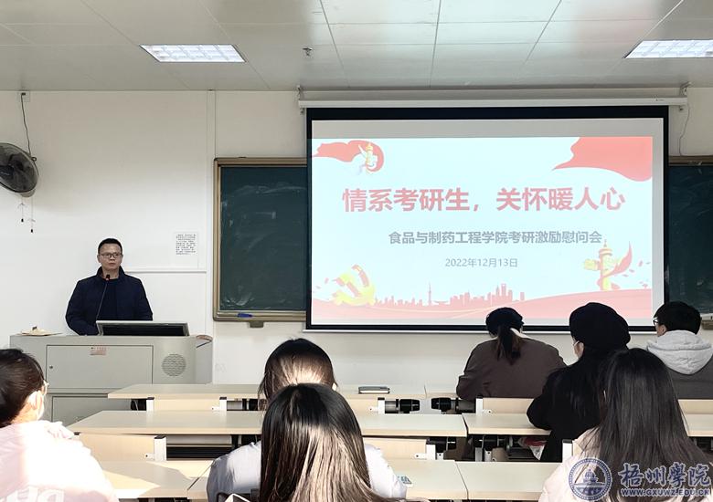 为鼓舞学生考研士气,增强备考信心,12月13日下午,食品与制药工程学院在明科楼K412举办2023届毕业生考研慰问会,教师代表、毕业班辅导员及全体考研学生参加慰问会。