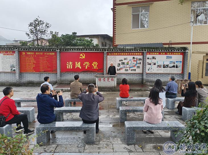 “以史为鉴,可以知兴替”。此次党日活动还有一项重要的内容是开展廉政警示教育活动。在组织党员们集体参观蒙山县坝头村的乡村振兴建设时,有幸邀请到了当地一位83岁的老党员黄荣森同志为党员们介绍了坝头村的“文明乡风建设”情况。从黄荣森老同志的描述中了解到:在孝顺文明、清正廉洁乡风的引导下,“廉、孝”二字已深深植入坝头村村民心中。村干部、党员、组长等人纷纷发挥示范领头作用,广泛动员群众参与到危房改造、修缮围墙等整治人居环境的美丽乡村建设中,形成以廉孝文化为主线,建成文化设施到村、文化服务到户、文化普及到人、文化扶贫到根的文化惠民道路。