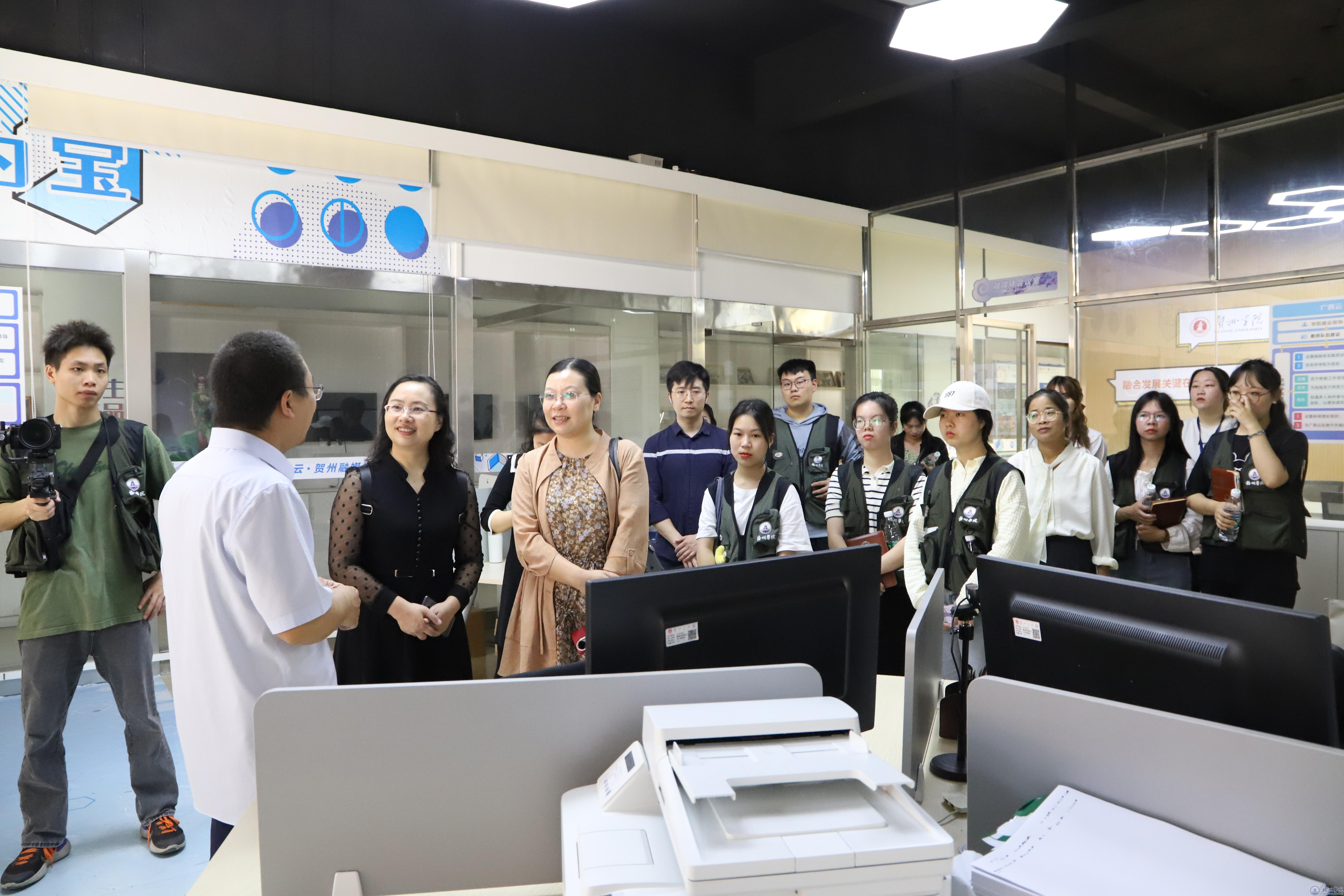 在谢雪清的陪同下,陈健萍一行参观了贺州学院的民族文化博物馆、贺州语言文化博物馆、广西云·贺州融媒体学院、人民网·贺州学院融媒体实验室等区域。