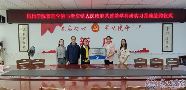 近日,管理学院与新庆镇人民政府举行共建教学科研实习基地签约挂牌仪式。管理学院领导、行政管理教研室教师代表,新庆镇人民政府有关人员参加活动。