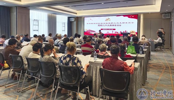 10月14日上午,中共梧州学院离退休教职工总支部委员会召开全体党员学习会,学习贯彻党的二十大精神。学习会由陈慧同志主持。