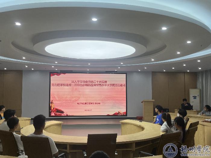 11月15日下午,电子与信息工程学院在明科楼1108开展学习宣传贯彻党的二十大精神宣讲会。学院130名积极分子参加会议。