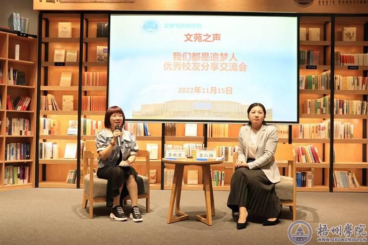11月15日下午,文学与传媒学院在明理楼一楼独秀书房开展“文苑之声——我们都是追梦人”为主题的优秀校友分享交流活动,2006级汉语言文学专业校友李秋荣现场和师生分享了自己的追梦之旅。本次活动由学院党委副书记龚红梅主持。