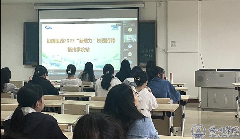 11月9日下午16:00,在明科楼K407教室举行恒瑞医药集团线上招聘宣讲会,食品与制药工程学院2023届制药工程专业毕业生参加宣讲会。