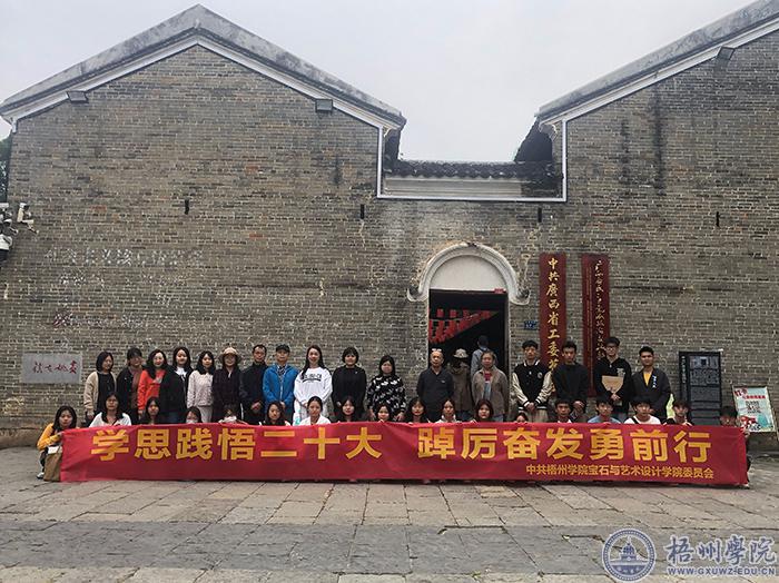 11月4号,宝石与艺术设计学院领导带领采风课程带队教师们和全体22级预备党员到中共广西省工委黄姚旧址、自治区爱国主义教育基地开展"学思践悟二十大 ,踔厉奋发勇前行"——二十大专题学习活动。