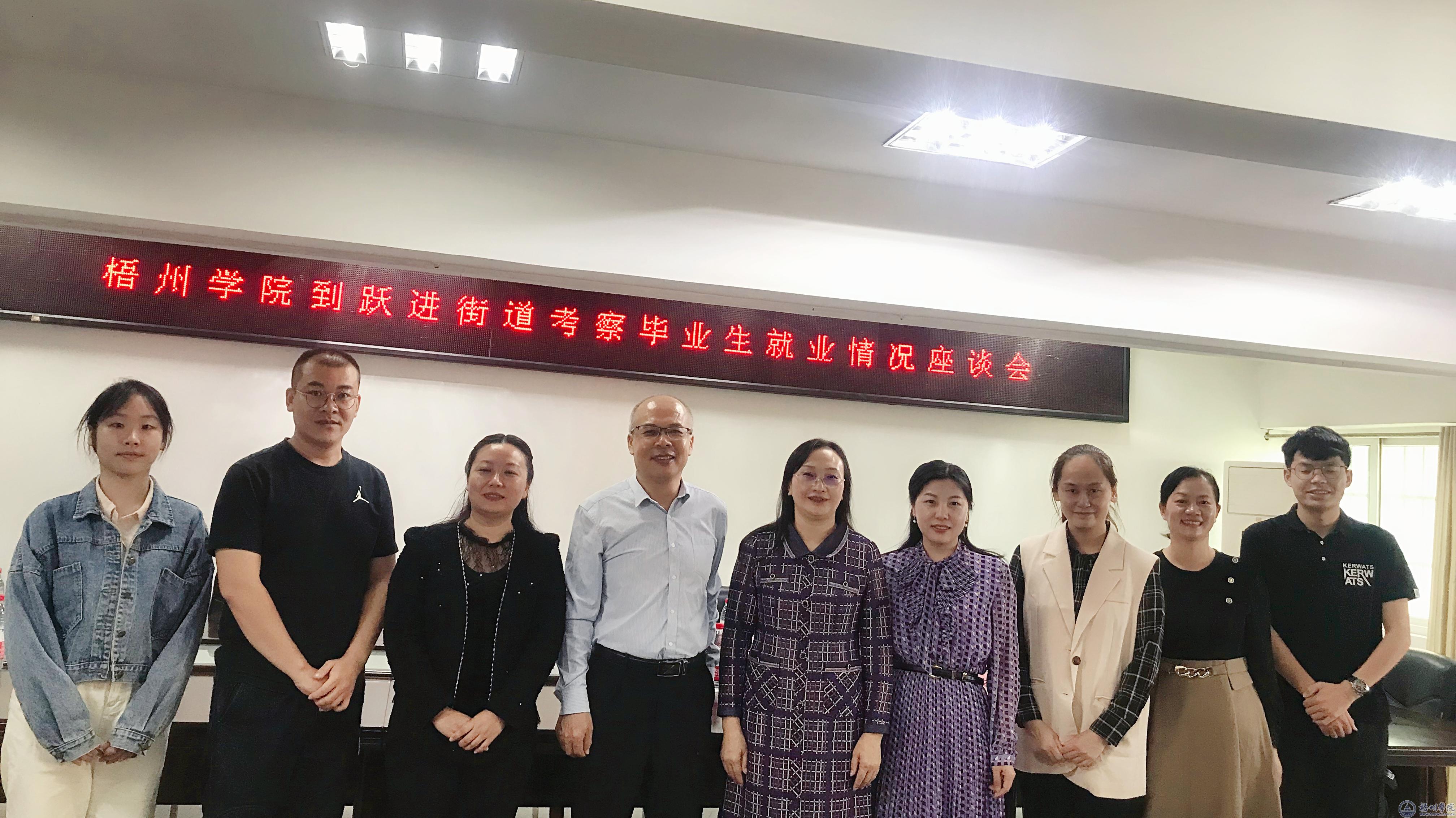 11月3日梧州学院文学与传媒学院党委书记梁宏云,副书记龚红梅带队到柳州市柳北区跃进街道办事处和来宾四中柳州分校走访调研,考察毕业生就业情况,了解用人单位需求。