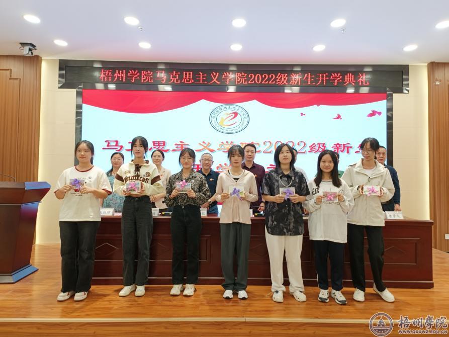 随后,主席台就坐的领导为同学们赠送学子梦想卡片,小小的卡片承载着学子们梦想的开始。紧接着,高年级代表2021级哲学班谭佳莉、新生代表2022级思想政治教育班王宇翔和教师代表欧琳宗分别上台发言。