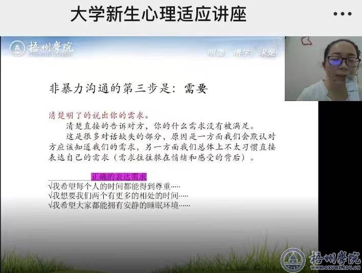为做好新生心理健康教育工作,普及心理健康知识,提高新生心理适应能力。9月18日,我校学生工作处心理健康咨询中心开展了以 “新征程,‘心’挑战”为主题的线上讲座,学校全体2022级新生参加。