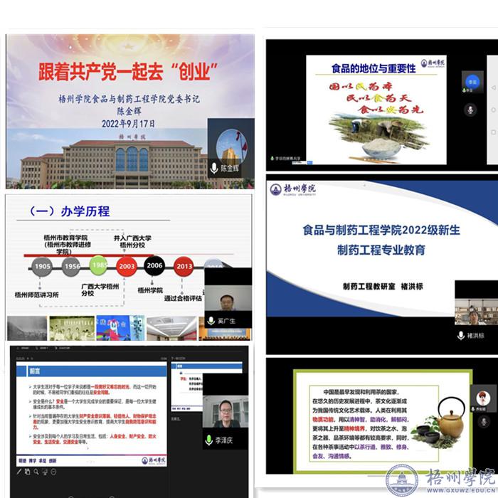 为帮助新生深入了解学院情况,更好适应大学生活,食品与制药工程学院于9月16-18日开展了系列2022级新生线上入学教育。学院班子成员、专业教研室主任、团委书记、辅导员参加活动。