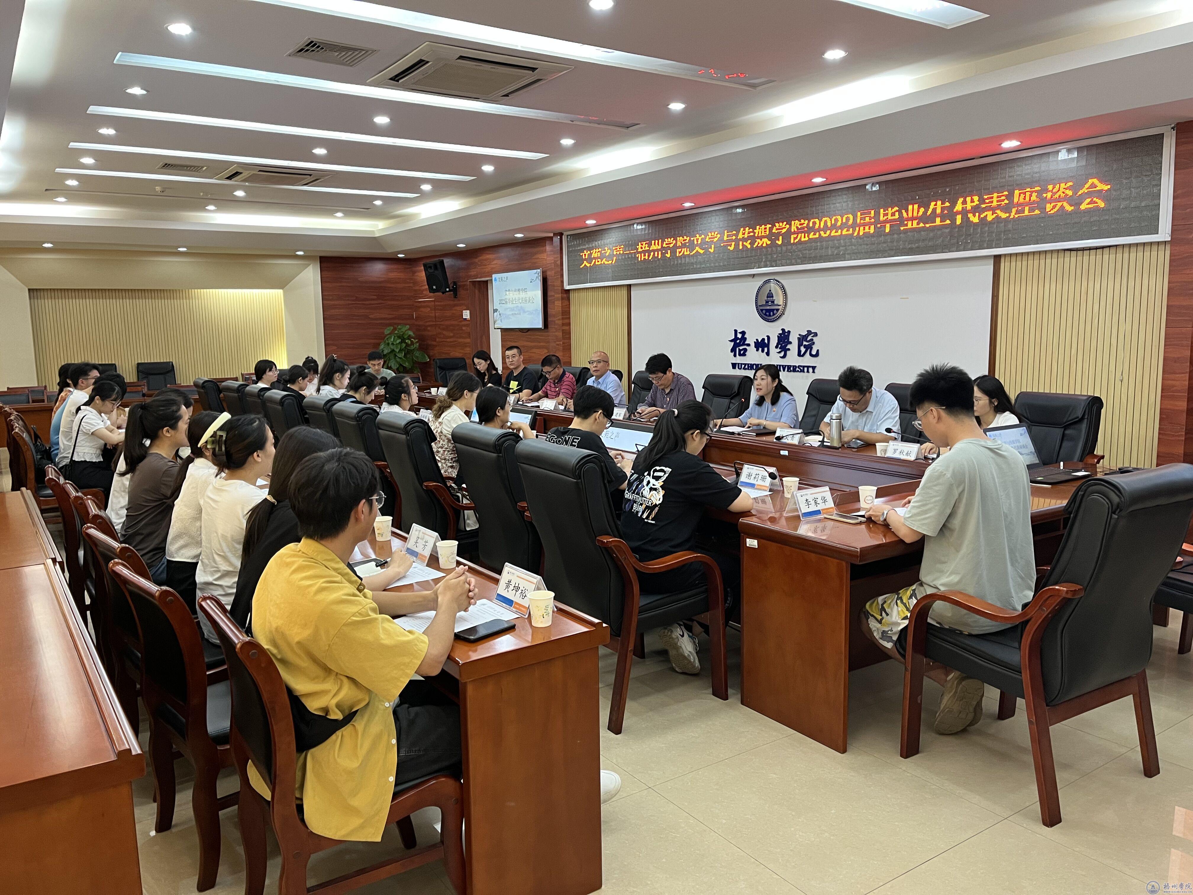 座谈会上,毕业生代表们分享了在梧院的求学时光、感悟与收获及对未来的规划,表达了对学院和老师们的感恩之情,对人才培养、文化建设、管理服务和改革发展等方面工作提出意见和建议。