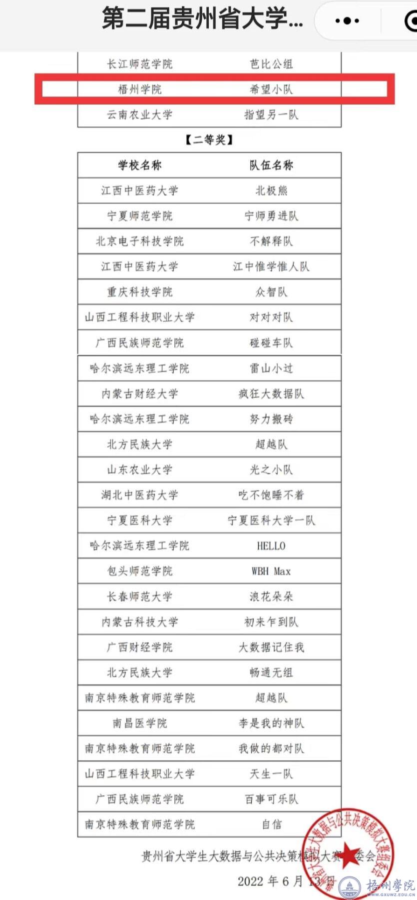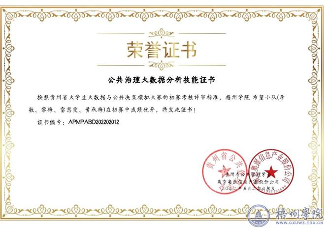 6月13日,我校管理学院2020级行政管理班李敏、黎梅等在陈花、彭顺绪两位老师指导下组建的“希望小队”荣获第二届贵州省大学生大数据与公共决策模拟大赛总决赛省外赛道一等奖,“希望小队”四名成员同时获得公共治理大数据分析技能证书。