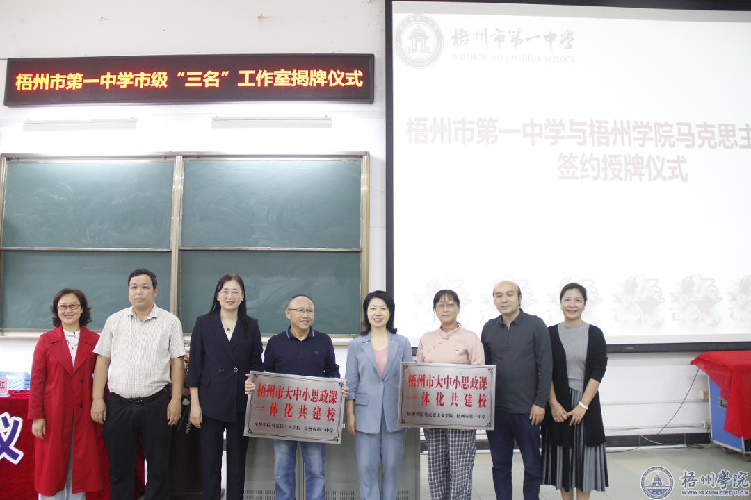 双方签订合作共建协议后,开展了“梧州市大中小思政课一体化共建校”授牌活动。