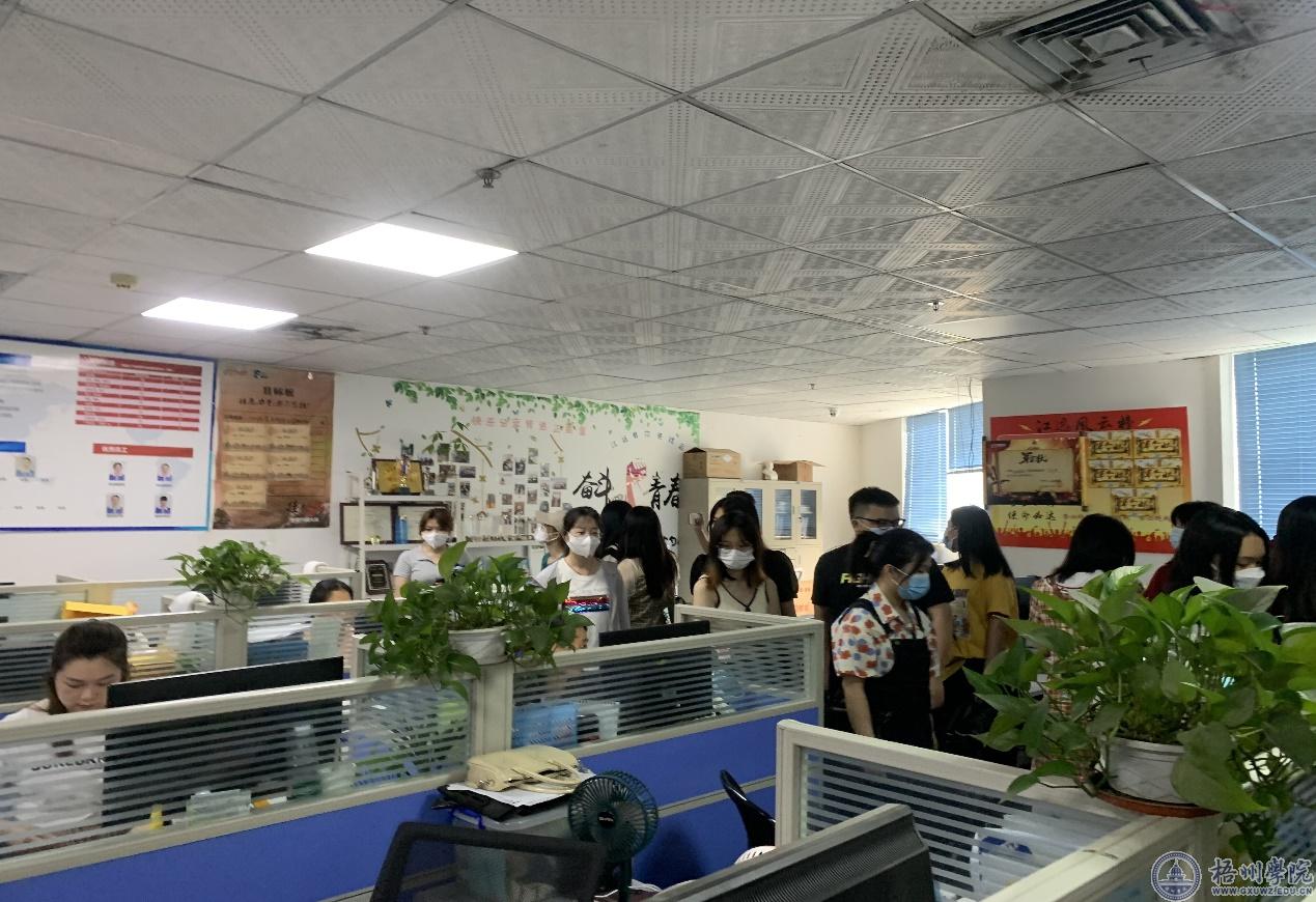 为了加强学生对企业的了解,提高学生的实践能力。5月27日,商学院组织21级电子商务专升本班的近50名学生前往梧州网商商会实践教学基地——梧州宝石大厦参观学习,商学院副院长叶毅参加活动。