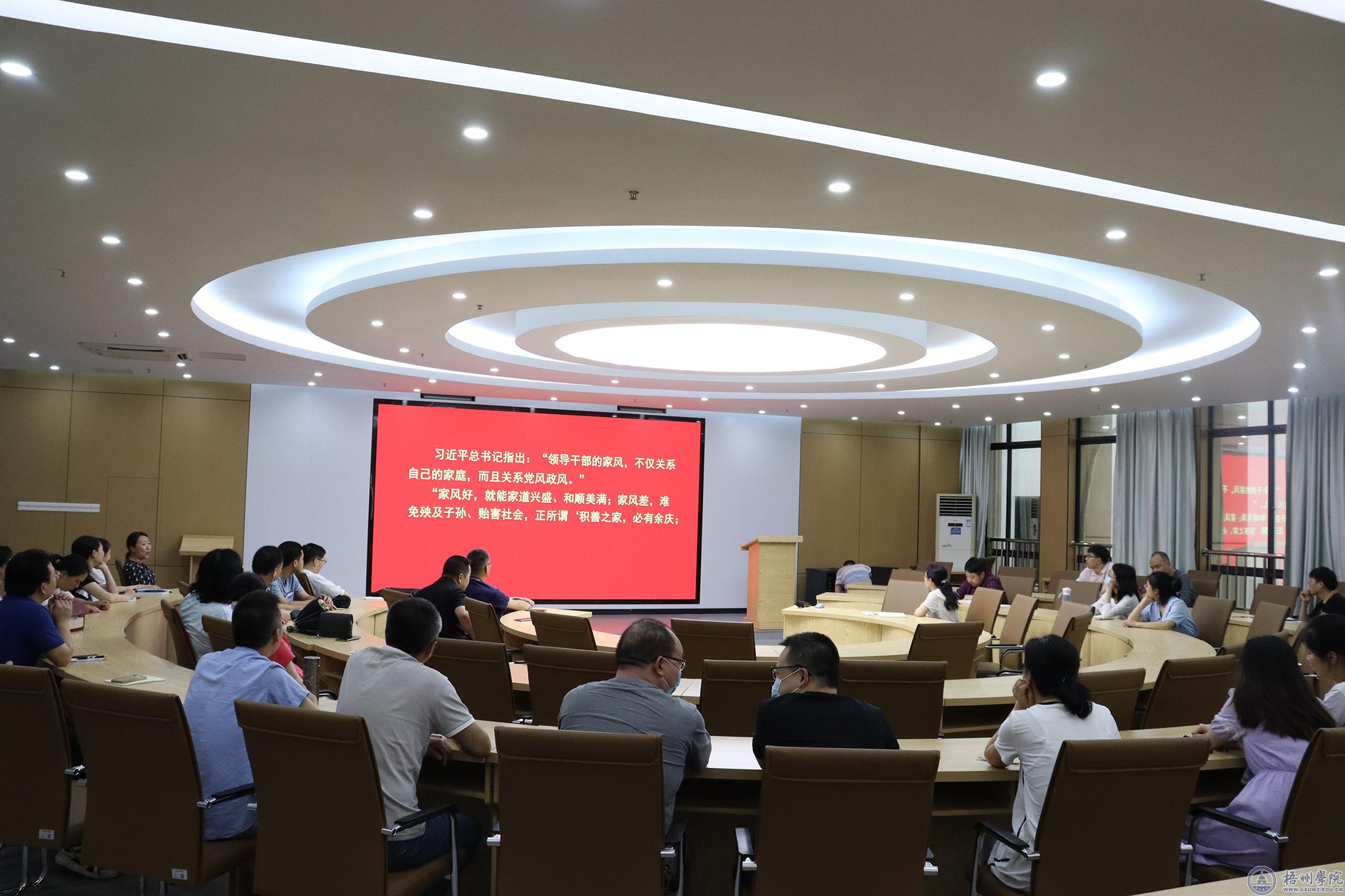 会上,万励带领全体教师学习了《中共梧州学院委员会 梧州学院清廉学校建设工作方案》第三大块内容“推进清正教风建设,营造敬业奉献的深厚氛围”。她要求全体教师要高度重视清廉学校创建工作,自觉增强廉洁意识、法纪意识,在全院上下营造风清气正的工作环境。随后,全体教师观看了广西电视专题片《领导干部家风不正典型案件警示录》,并签订了廉洁从教承诺书。