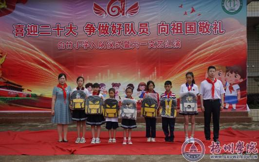 活动在白竹小学庄严的入队仪式中拉开序幕,学院师生和白竹小学的孩子们载歌载舞,满怀激情呈现了一台生动有趣的表演。学院的党员教师给孩子们讲述了党史故事,通过新颖的形式引导孩子们坚定理想信念。