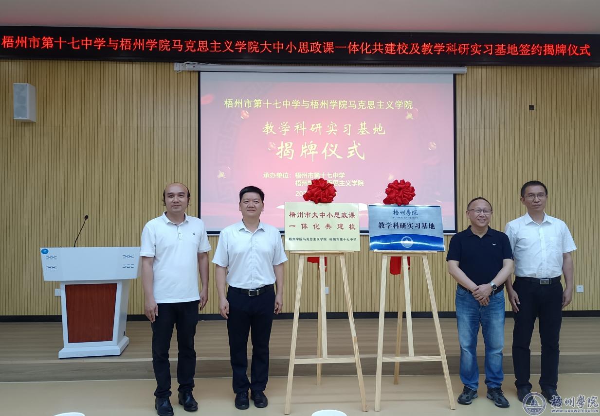 6月2日下午,马克思主义学院院长尹杰钦一行5人到梧州市第十七中学开展大中小思政课一体化共建和教学科研实习基地签约授牌活动,梧州市教育局党组成员、总督学王剑彪,梧州市第十七中学党支部书记曾光、校长吴锦志等班子成员以及市教科所、名师工作室代表参加了活动。