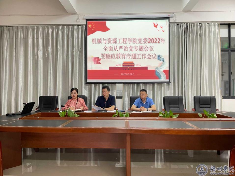 6月8日下午,机械与资源工程学院党委在明科楼1303室召开2022年全面从严治党暨廉政教育专题工作会议。学院全体教职员工参加会议。