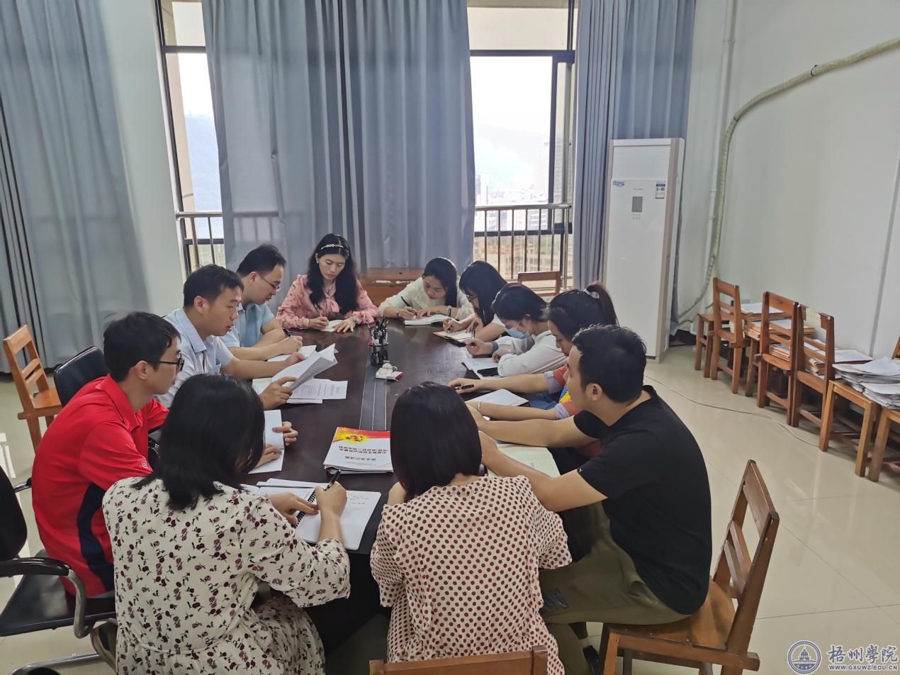 会上,黄焕克领学了《韦仕珍同志、梁业华同志在学校2022年全面从严治党工作暨纪委三届六次全体(扩大)会议上的讲话》和《中共梧州学院委员会 梧州学院清廉学校建设工作方案》并传达了全国、全区2022年教育系统全面从严治党工作视频会议精神。他说道,2022年是党的二十大召开之年,也是我校全力推进“申硕攻坚战”的关键之年,做好全面从严治党工作责任重大、意义重大。他要求各党支部要提高站位,狠抓落实,充分发挥政治核心作用;要立足实际,强化建设,有力发挥战斗堡垒作用;广大党员干部要率先垂范,以身作则,充分发挥先锋模范作用,共同推进学院全面从严治党暨“清廉校园”建设。