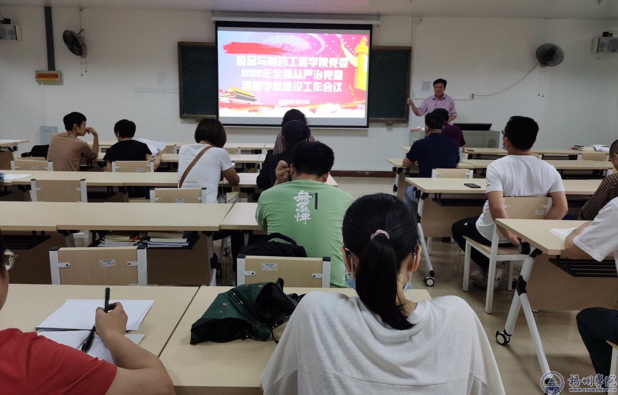 5月25日下午,食品与制药工程学院党委在明科楼K303教室召开了2022年全面从严治党暨清廉学校建设工作会议,学院全体教职工参会。