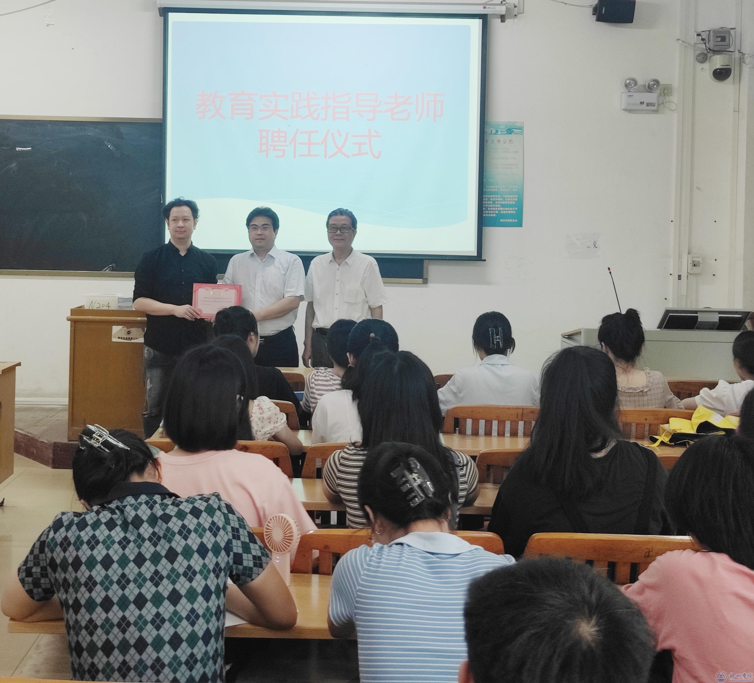刘卫东院长为张凌志会长颁发商务英语专业教育实践指导老师聘书。