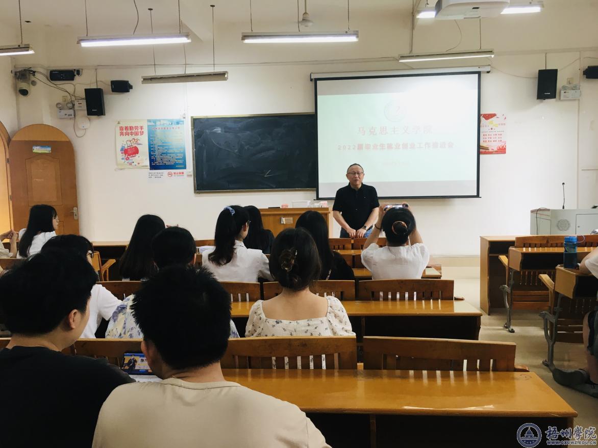4月25日下午,马克思主义学院在明理楼M510召开2022届毕业生就业创业工作推进会,学院党委书记张朝松、院长尹杰钦作讲话,动员同学们积极就业。2018级哲学班学生参加会议。