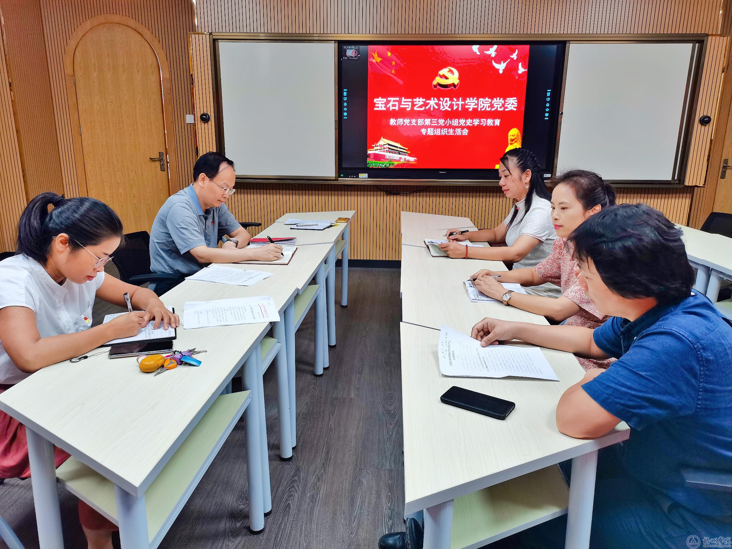 7月7日下午,宝石与艺术设计学院教师党支部召开党史学习教育专题组织生活会。学校纪委书记梁业华以普通党员身份参加了生活会,学院全体教师党员参加会议。