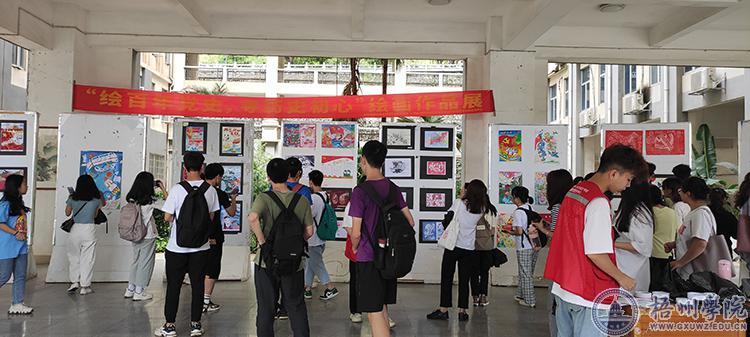 为庆祝中国共产党成立100周年,宝石与艺术设计学院于6月2日至3日在明理楼南楼一楼中庭开展“绘百年党史,寻历史初心”绘画作品展。此作品展吸引了全校师生驻足观看。