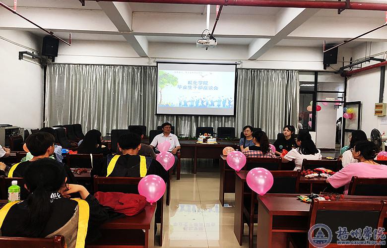 6月28日,机化学院召开毕业学生干部代表座谈会,学院党委书记陈金辉、党委副书记许玉婷,毕业学生干部代表以及在校学生代表参加座谈会。