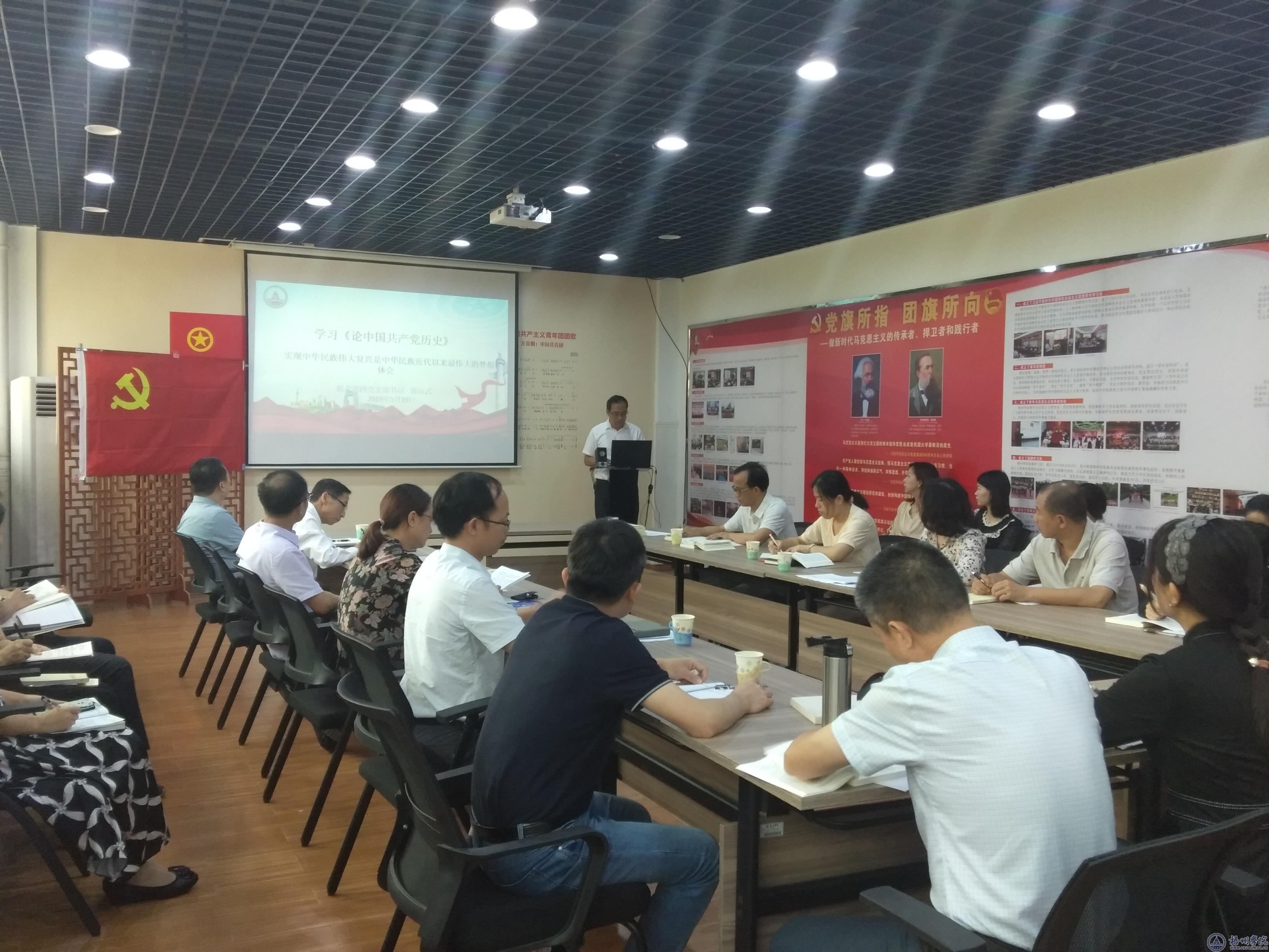 5月19日,机关第四支部在学校青马书屋召开党史学习教育专题会,支部全体党员参加了学习。学习会按照“学史明理、学史增信、学史明德、学史力行”的党史学习教育总要求,围绕党史、新中国史、改革开放史、社会主义发展史开展学习。