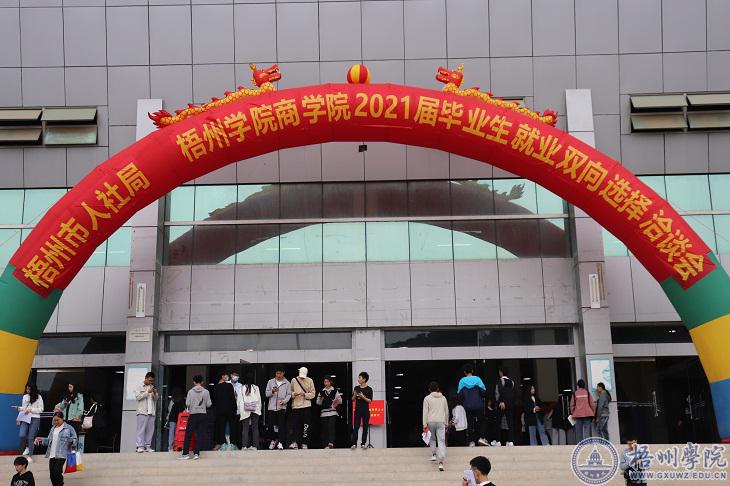 4月11日上午,学校在体育馆一楼举办2021届毕业生就业双向选择洽谈会,70多家用人单位进校招聘,为2021届毕业生提供就业岗位1800多个。双选会由梧州市人力资源和社会保障局和学校商学院共同主办。