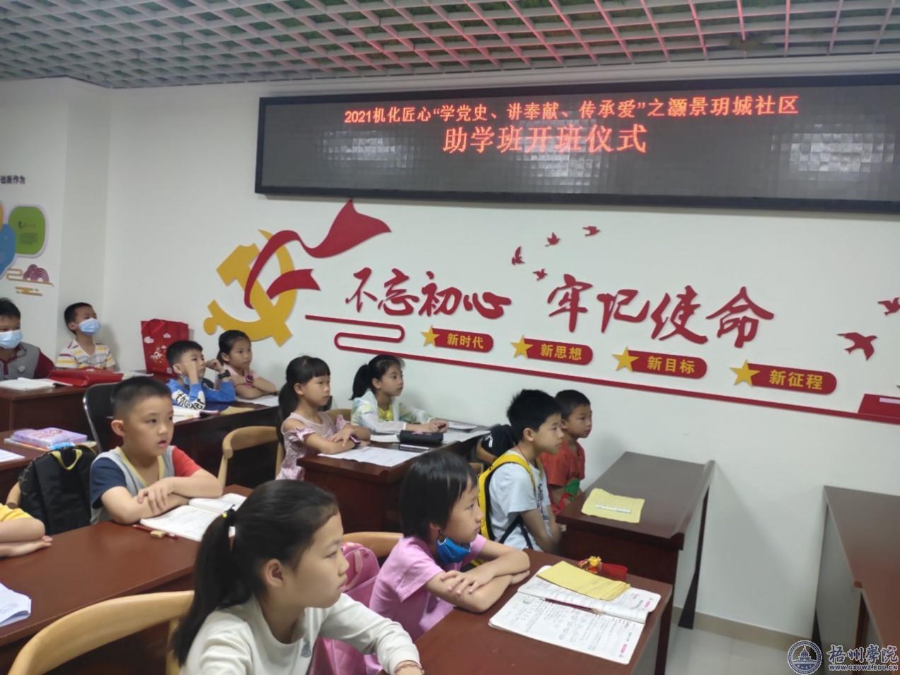 4月24日上午,机化学院青年志愿者分会在灏景玥城社区举办“学党史、讲奉献、传承爱”爱心助学班开班仪式。梧州市长洲区关工委主任李小坚、万秀区关工委李国楹主席、灏景玥城潘琼珍书记,及15名志愿者、25名小学生参加活动。