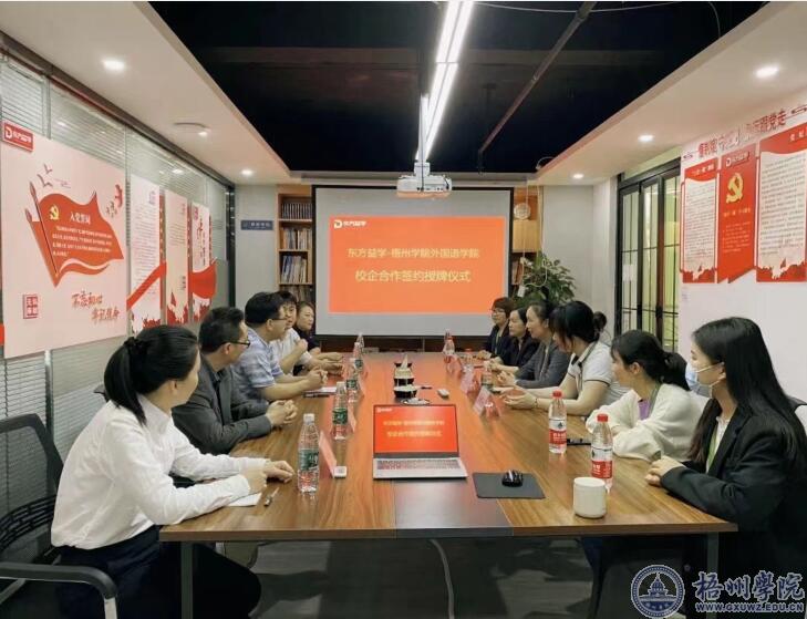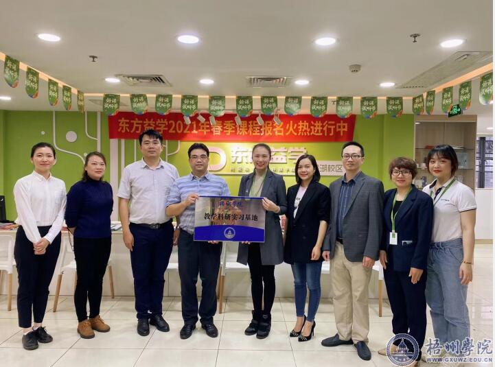 4月26日下午,外国语学院与南宁东方益学教育培训集团在南宁签订校企教学科研实习基地协议和授牌仪式。双方就学生实习实训情况、校企教学科研合作事项进行了会谈。校企教学科研实习基地的建设,将积极推进外国语学院英语专业建设,促进英语类专业学生创新能力和实践能力的培养,进一步加快学术和教学成果的转化。