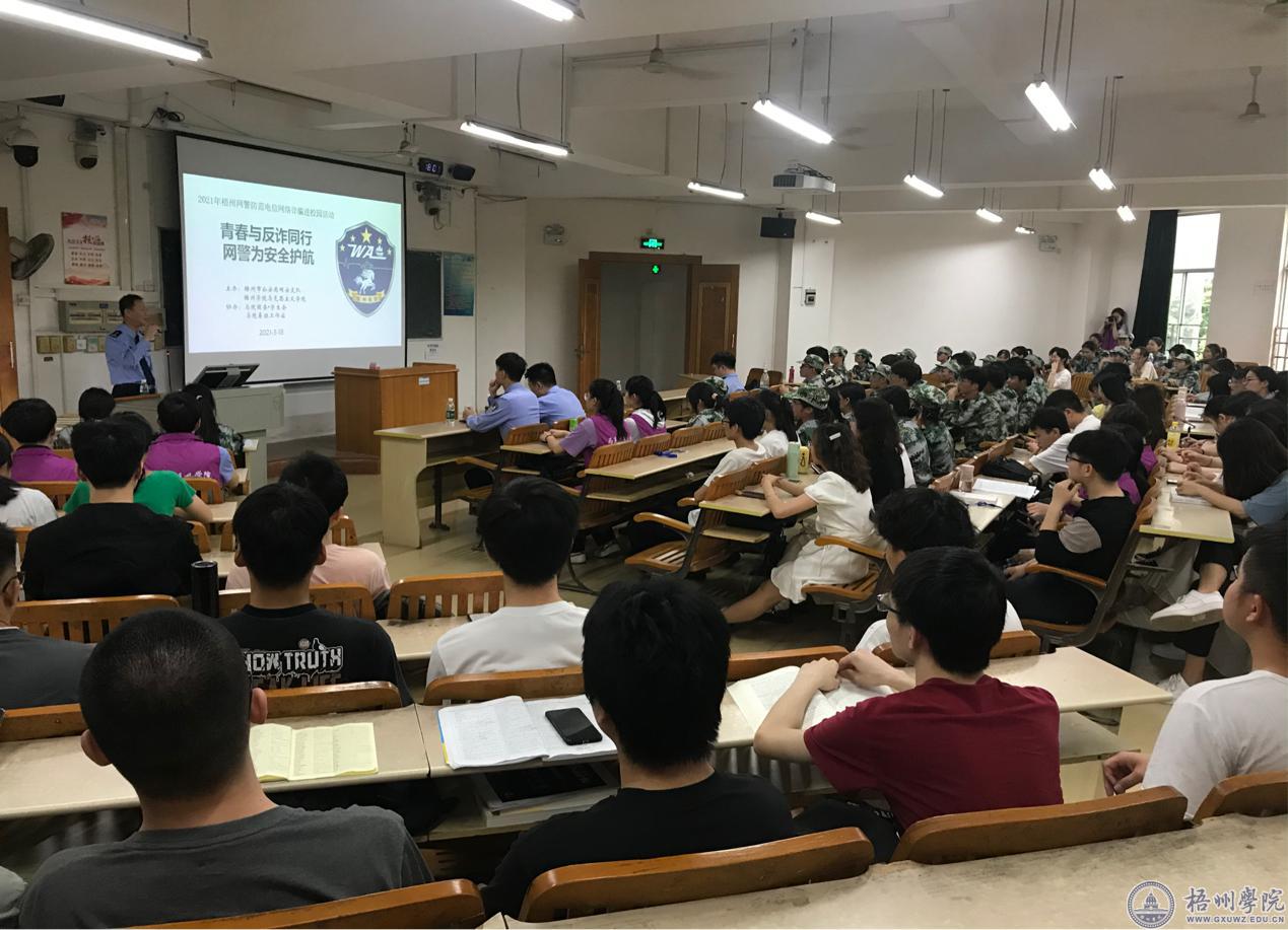 为提高同学们的防诈骗意识,3月18日下午,马克思主义学院开展主题为“青春与反诈同行,网警为安全护航”的预防网络诈骗安全教育活动,活动邀请了梧州市公安局网络安全保卫支队民警为同学们上预防网络诈骗安全教育课。
