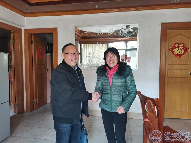 在唐哲老师家中,党总支书记冀宁带去了新出版的几期《梧州学院报》,大家一起畅聊学校近期的成就和喜事,气氛融洽。在与黄德建老师的慰问交谈中,院长尹杰钦详细了解了她退休以后的生活,大家共同分享思政课教学改革的进程及成就。通过慰问,学院领导对退休老师多年的辛劳付出表示感谢,祝愿他们退休生活愉快、身体健康、幸福美满,希望他们继续关心和支持学院的发展,有空常“回家”看看。