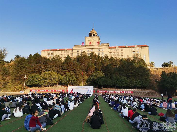 为进一步宣传艾滋病防治知识和国家的相关政策,大力倡导大学生群体养成健康的生活习惯,牢固树立防治艾滋病的意识,12月29日下午,由梧州市防治艾滋病工作委员会、梧州市卫生健康委员会联合主办,梧州先涛文化传播有限公司承办的2020年梧州市“携手防疫抗艾、共担健康责任”主题文艺汇演在我校田径场举行。我校近3000名学生现场观看了演出。