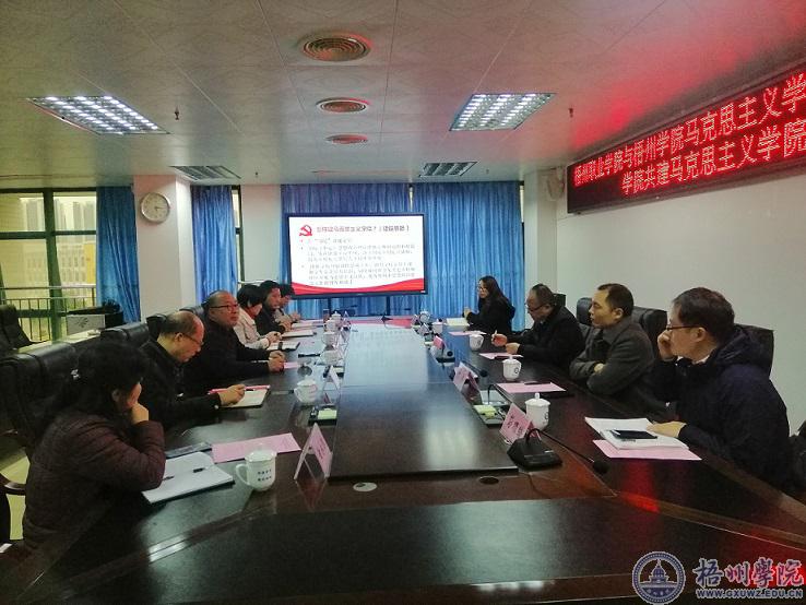 1月4日下午,马克思主义学院院长尹杰钦、法学与公共管理学院院长方勇一行五人应邀到梧州职业学院就共建马克思主义学院进行交流。调研座谈会由梧州职业学院党委书记时伟主持。