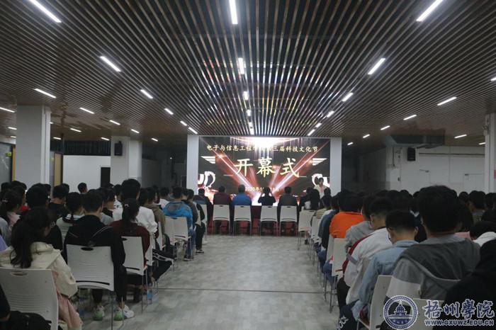 11月11日晚,电子与信息工程学院在大学生发展中心就业指导中心举办第三届科技文化节开幕式,学院领导、教研室主任,辅导员以及200多名学生代表参加了本次活动。