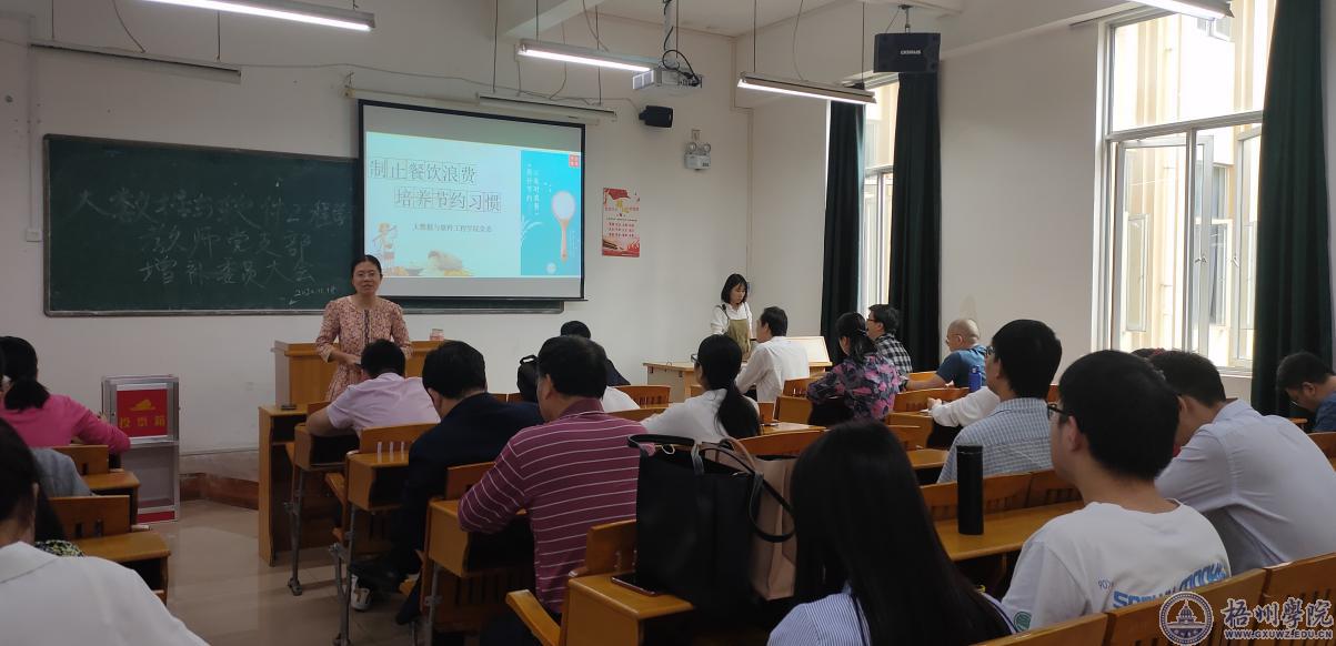 为深入学习贯彻习近平总书记关于厉行节约、反对浪费,特别是制止餐饮浪费行为的一系列重要指示精神,大数据与软件工程学院党委于11月18日召开 “制止餐饮浪费 培养节约习惯”专题学习会,全体教师党员参加。