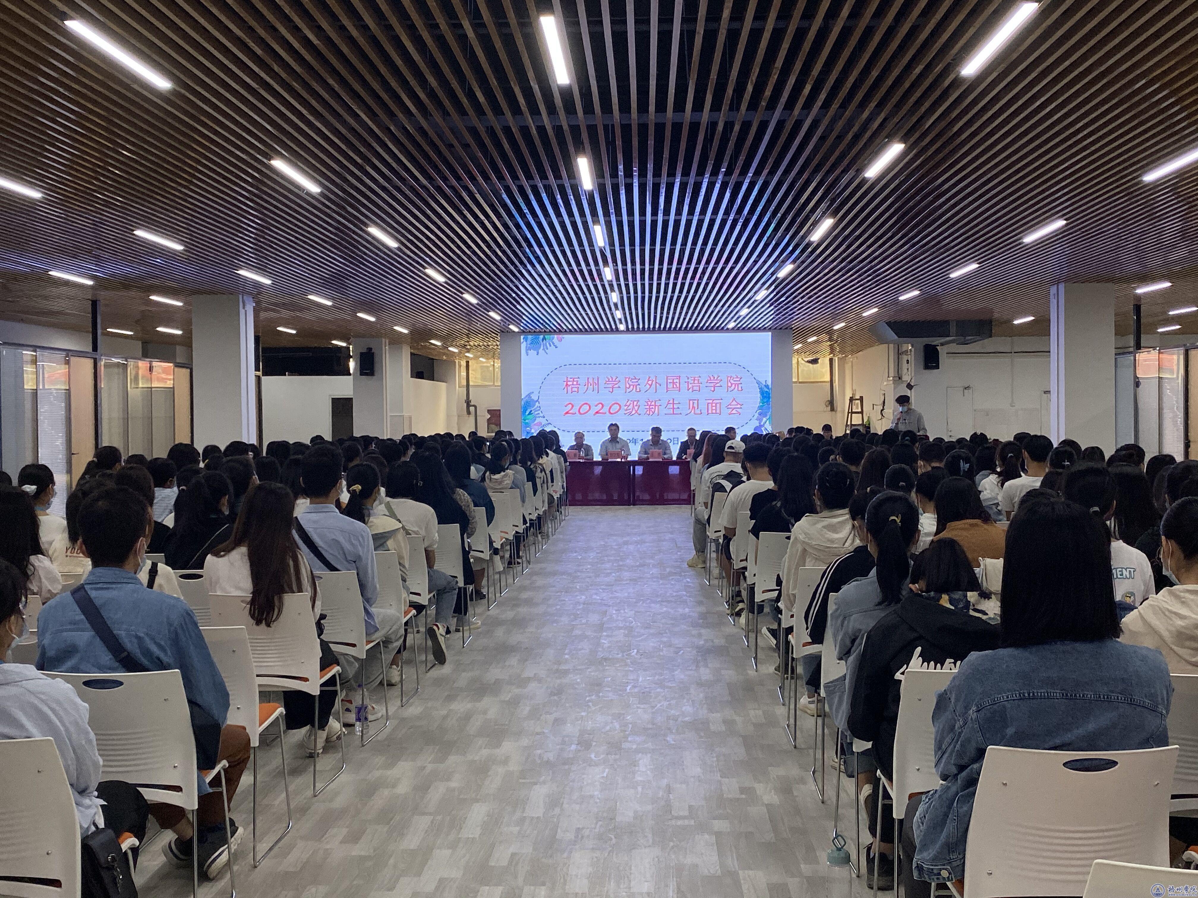 10月20日下午,外国语学院在大学生就业指导中心举行2020级新生见面会。学院领导、各专业教研室主任、全体辅导员、2020级新生班主任,2020级全体新生参加了见面会。