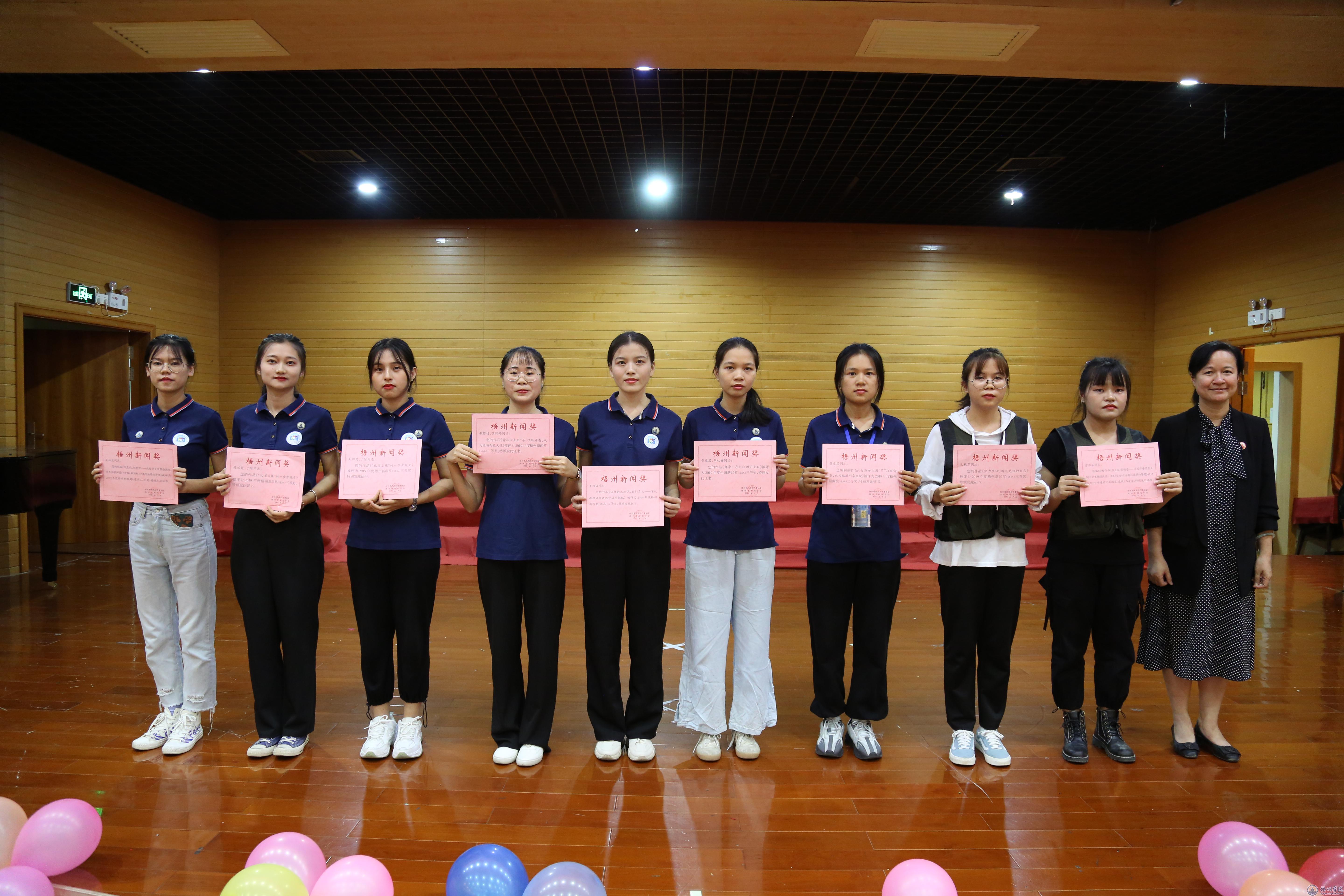 会议表彰了2019年中国高校校报新闻奖、梧州新闻奖和学校2019-2020年度宣传积极分子、优秀编辑、优秀记者、优秀宣传干部等奖项和荣誉称号的32名校园记者,与会领导为获奖成员颁发了证书和奖杯。