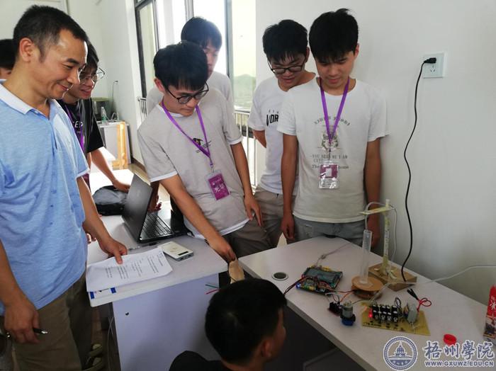 9月23日下午,2020年广西区电子设计竞赛梧州赛区第一阶段测评工作在科技楼1209室进行,电子与信息工程学院18名专业教师组成的专家组对参赛作品进行测评。在第一阶段测评中,有62组,合计186名学生报名参赛,最终选出一等奖6组,二等奖11组,三等奖17组,其中一、二等奖将参加第二阶段的比赛。