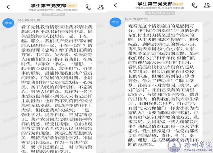 6月27日,该院党委组织全体师生党员、发展对象共176人通过腾讯会议APP线上观看党性教育情景剧《忠诚》。该剧以习近平总书记关于“好干部”的标准和要求为主线,以胸襟、信念、情操、担当、理想为主题,展现了韦拔群、陈洪涛、韦江歌、吴天来、莫振高等优秀共产党员追求真理、坚定信念、顾全大局、联系群众、恪尽职守、无私奉献的英雄事迹和崇高品质。通过观剧、写心得,对全体师生党员进行了一次党性洗礼。