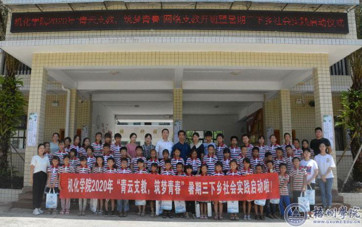 7月4日,梧州学院机化学院暑期“三下乡”社会实践活动启动了。启动仪式在梧州市蒙山县汉豪乡白竹村小学操场举行,梧州学院团委书记李德华、机械与化工学院党委副书记许玉婷、机化学院志愿服务团部分老师和学生以及白竹村小学的师生们现场参加了启动仪式;在全国各地的机化学院志愿者们线上观看了启动仪式直播。