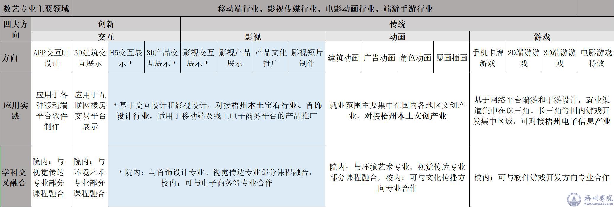 梧院数艺专业主要领域介绍图