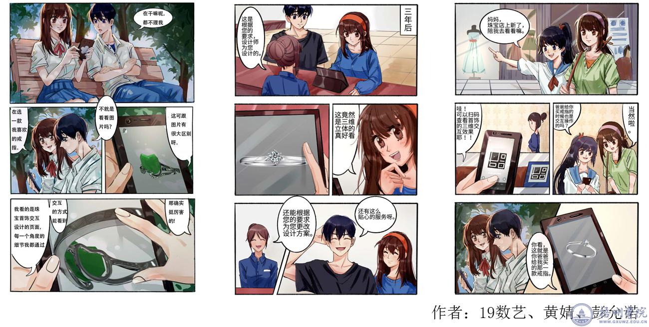 数艺专业《交互UI动效设计》课程教学中,与广西梧州市致臻影视科技工作室共同指导学生进行实际案例制作,针对梧州首饰设计产业,课程教学成果作业主要以手机漫画和游戏UI动效的形式表现出来。