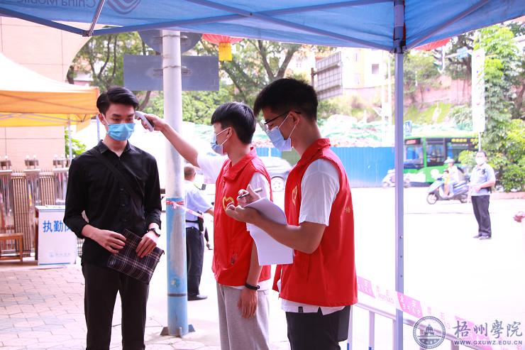 广西2020年本科院校对口招收全区中等职业学校毕业生试点考试招生联合测试于6月11日在我校举行。时值新冠肺炎疫情期间,为落实梧州学院新冠疫情防控要求、保障考试的顺利进行,机化学院招募了53名志愿者为本次招生考试做疫情防控服务。